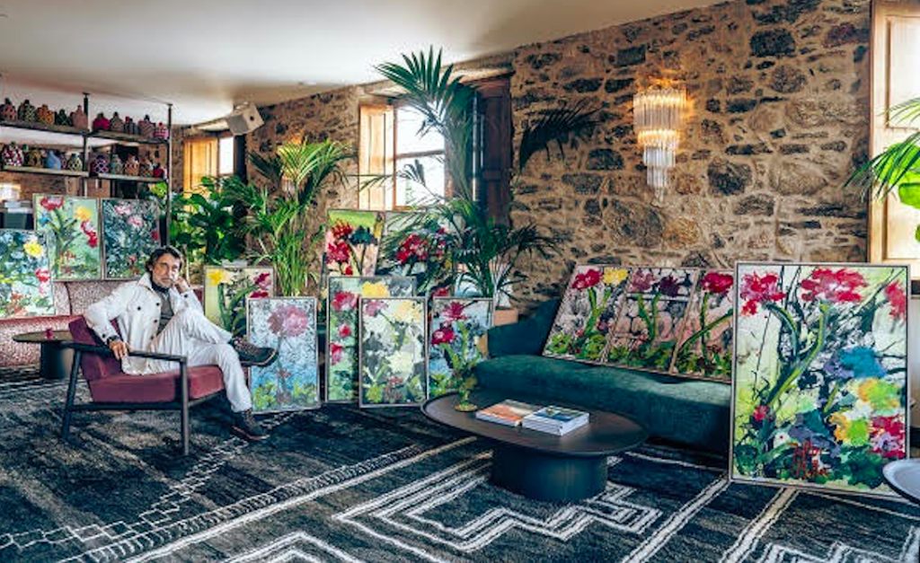 “Flores sobre Flores” o “Flores sobre vegetación ya existente”, es como el artista llama a esta propuesta de intervención estética en el hotel Casa Beatnik, en Santiago de Compostela.