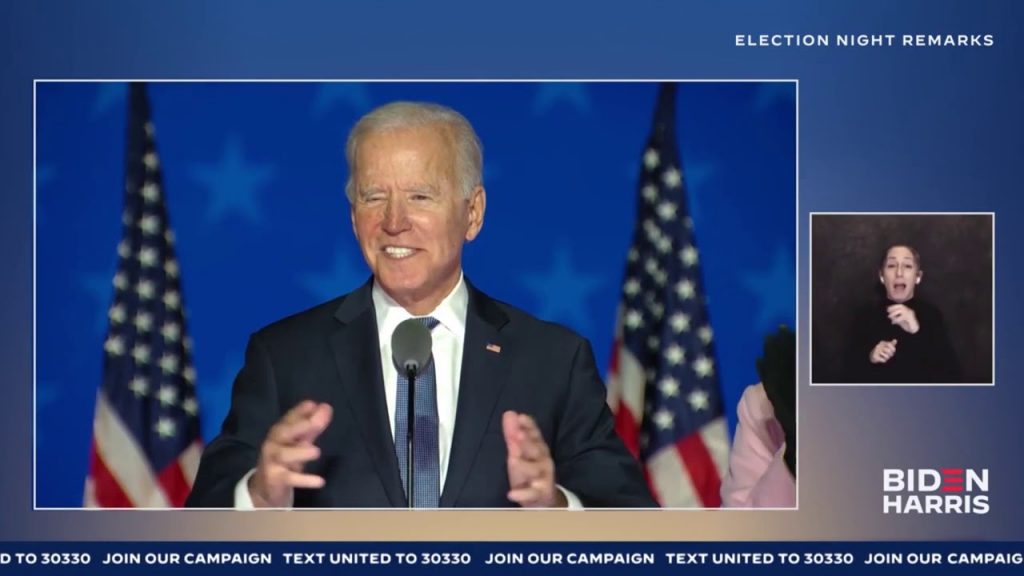 Declaraciones del candidato demócrata a la presidencia de Estados Unidos, Joe Biden, quien ha dicho en un discurso durante la madrugada de este viernes que cree estar en “buen camino” de ganar las elecciones y ha pedido “paciencia” a sus seguidores hasta que se cuenten todos los votos. (Fuente: Joe Biden)