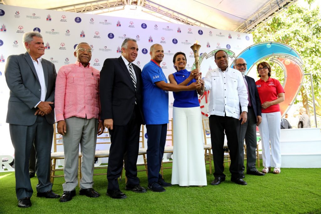 La ruta de la antorcha se inició con la entrega, de parte de la Primera Dama, de la “Llama de la Esperanza”, portadora del mensaje de inclusión de Olimpiadas Especiales, al doble campeón olímpico Félix Sánchez.