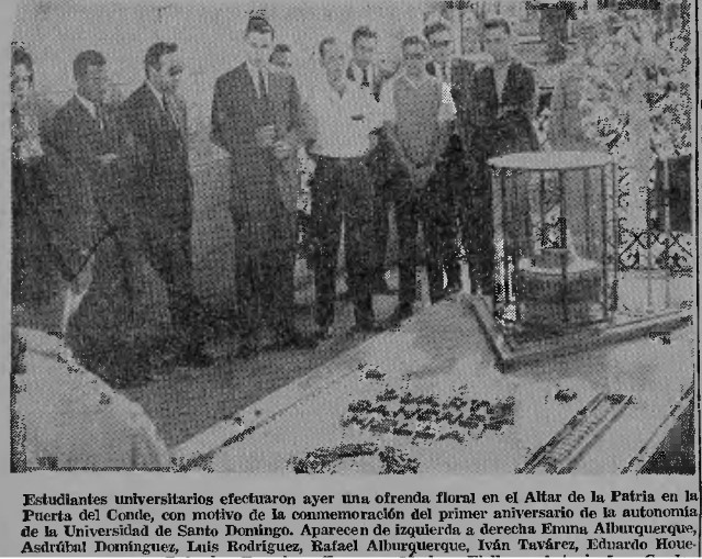 En un comunicado difundido en ese acto del 26 de enero se hizo una defensa ardiente de la autonomía y el fuero universitarios y se dijo que había llegado el momento de enfrentar a los profesores trujillistas, ya que no iban a permitir que la UASD fuese su refugio; agregando que las enérgicas manifestaciones estudiantiles que se estaban realizando, tenían como único objetivo demostrar que no dejarían que los trujillistas siguieran impartiendo cátedras en esa academia.