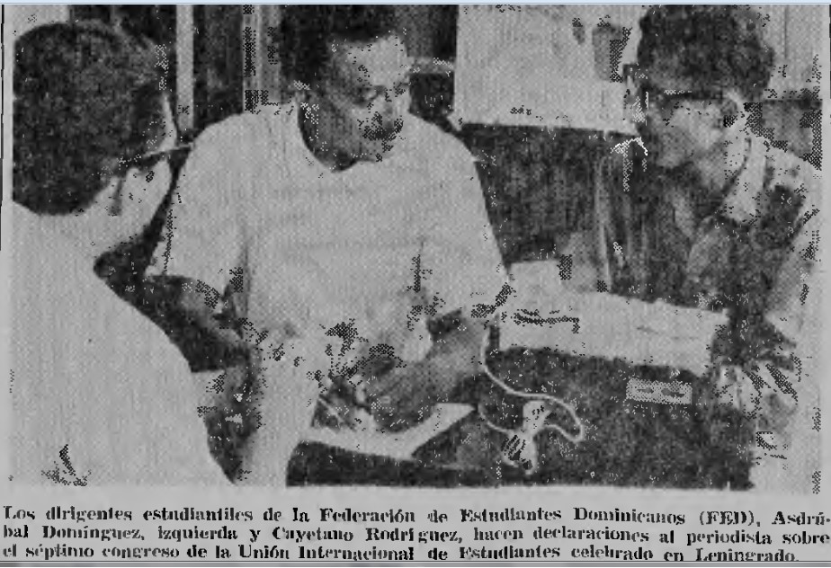 Estos dos dirigentes de Fragua asistieron a diversos eventos internacionales, siendo los primeros estudiantes dominicanos en visitar oficialmente Rusia como delegados del Séptimo Congreso Mundial de la Unión Internacional de Estudiantes (UIE), efectuado en la ciudad de Leningrado, del 18 al 26 de agosto de 1962. Sin embargo, ese estrecho lazo de confraternidad y camaradería no le impidió al principal líder de Fragua, que era Domínguez Guerrero, colocarse a cierta distancia de los eventos que se desarrollaron el 31 de enero de 1963 contra los educadores que ellos inscribieron en el famoso listado de “trujillistas reaccionarios y recalcitrantes”. Y esta apreciable ausencia parecía indicar que éste no estaba conforme con el violento proceso de destrujillización de la UASD, aunque lo aceptara atendiendo a cierta disciplina gremial.