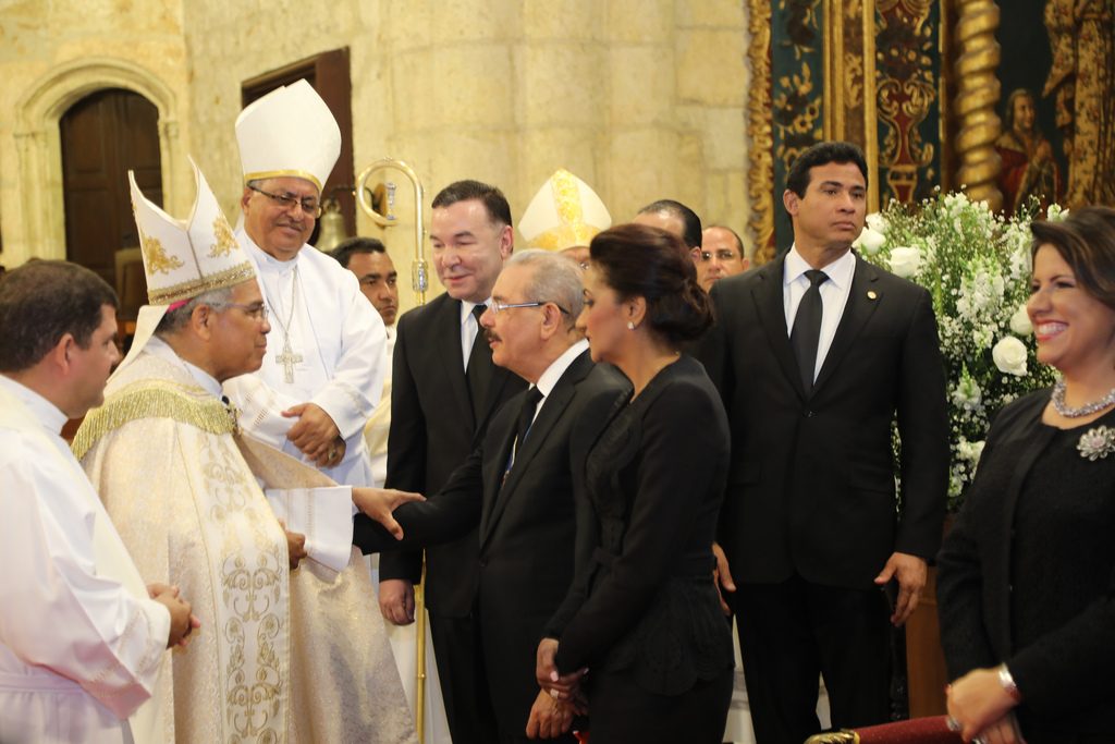 El jefe de Estado Dominicano llegó, a la Catedral Metropolitana Santa María de la Encarnación Primada de América, acompañado de la Vice-presidenta de la República, Margarita Cedeño de Fernandez; la primera dama, Doña Cándida Montilla de Medina; así como sus hijas Sibeli y Vanessa Medina Montilla.