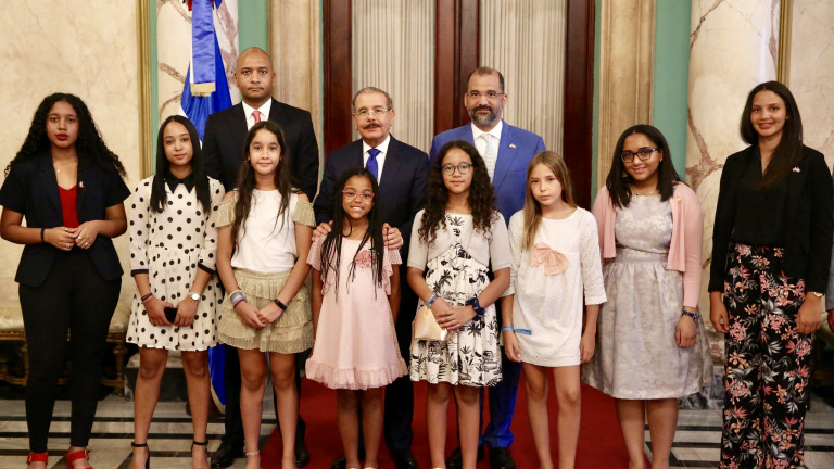 Palacio Nacional, R. D.-El presidente de la República Dominicana Danilo Medina Sanchez recibió al mediodía de hoy a los ganadores de la XI edición del Premio al Mérito Escolar en España, en el Salón Privado del Palacio Nacional.