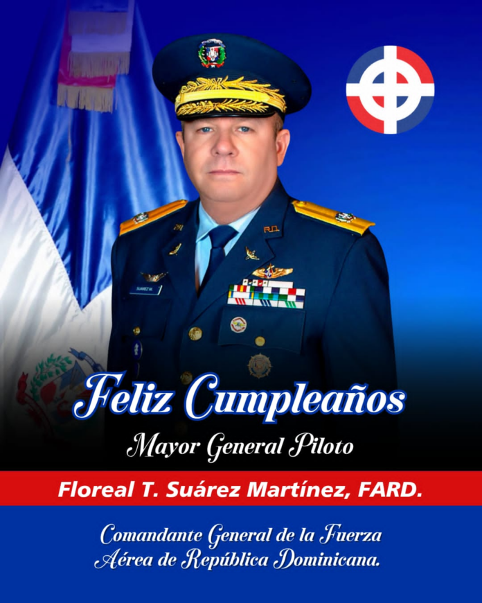La Fuerza Aérea de República Dominicana felicita a su Comandante General, Mayor General Piloto Floreal Suárez Martínez, en ocasión del aniversario de su natalicio.