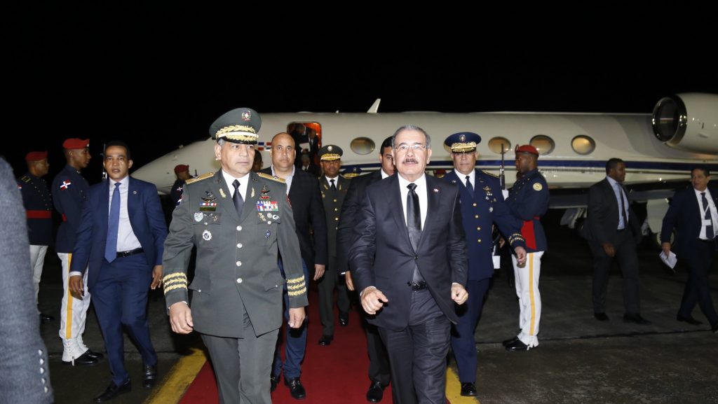 En la terminal aérea esperaron al gobernante el ministro de Defensa, teniente general Rubén Darío Paulino Sem. También el jefe de la Fuerza Aérea Dominicana, general piloto Luis Payán Díaz. Asimismo el jefe de la Guardia Presidencial, general Bonaerges Reyes Batista.