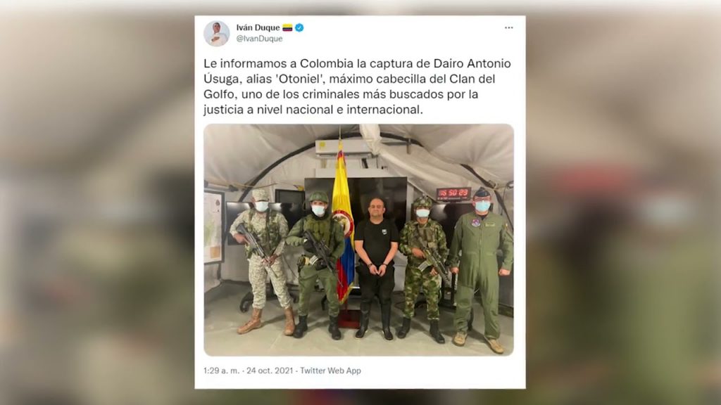 Para Duque, la detención de Úsuga es “el golpe más duro que se le ha propinado al narcotráfico en este siglo” en Colombia, acusado como está de enviar toneladas de cocaína hacia Centroamérica y Estados Unidos por Urabá, recoge la cadena RNC.