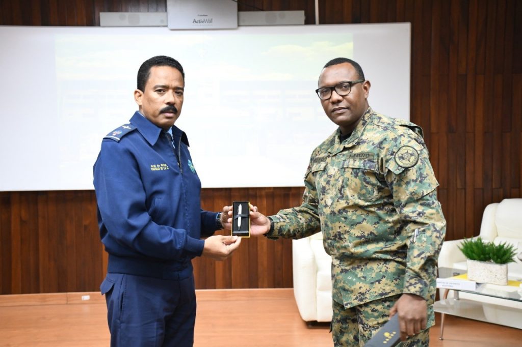 Ministerio de Defensa Dominicano.-El General de Brigada de Defensa Aérea Aracenis Castillo De La Cruz, FARD, Director General del Cuerpo Especializado en Seguridad Aeroportuaria y de la Aviación Civil, CESAC, pronunció Una conferencia, sobre los Roles, Capacidades y Funciones de ese Cuerpo Especializado, a los estudiantes de la 5ta.