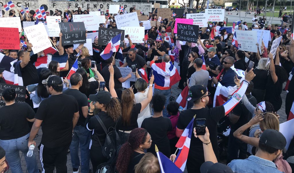 Miami, Florida.- Cientos de dominicanos de todas las edades salieron este domingo a las calles en la ciudad de Miami, y se congregaron en el área del Bayfront Park, para protestar por la suspensión de las elecciones municipales del pasado 16 de febrero en RD y para que sea sustituido el Pleno de la Junta Central Electoral (JCE).