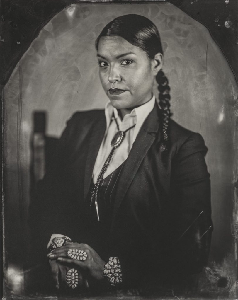 El proyecto Intercambio crítico de fotografía indígena (CIPX, por sus siglas en inglés) de Wilson aborda estos conceptos erróneos mediante el uso de técnicas fotográficas históricas y el énfasis en una relación recíproca con los retratados, lo que les permite intervenir en todos los aspectos de su presentación. Wilson lleva el proyecto CIPX aún más allá en la contemporaneidad con la inclusión de “Talking Tintypes” (imágenes hablantes) utilizando la tecnología de realidad aumentada (AR) de una práctica aplicación para dar vida a las fotografías. En conversación, es una exploración contemporánea de la ciencia de la fotografía, pero también una respuesta al impacto histórico y la importancia de la (auto) representación.