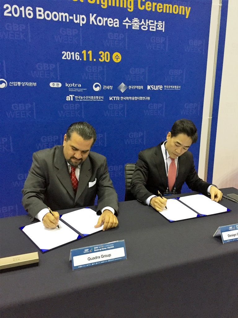 La firma del acuerdo se realizó en el marco de la celebración del Global Business Partnering 2016 en las ciudades de Seúl, Dulsan y Daegu de Corea del Sur, cuya responsabilidad internacional recayó en la empresa norteamericana de inversiones Quadra.
