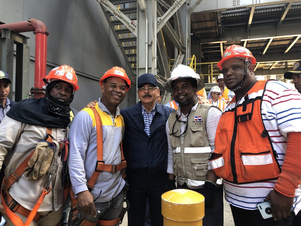 Allí Danilo Medina conversó con los trabajadores de la obra y recibió información sobre las toneladas de carbón llegadas al país.