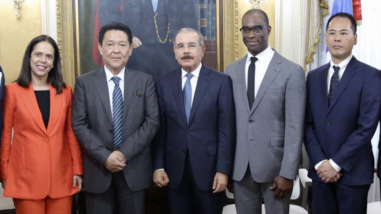 Con ellos, el presidente de la República conversó animadamente y les expresó parabienes en la celebración del aniversario de operaciones en República Dominicana.