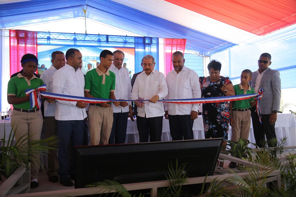 Durante un acto, el presidente Danilo Medina Sanchez entregó el Centro Educativo del Nivel Secundario Vetilio Alfau Durán (Liceo Friusa), con 29 aulas para 875 estudiantes.
