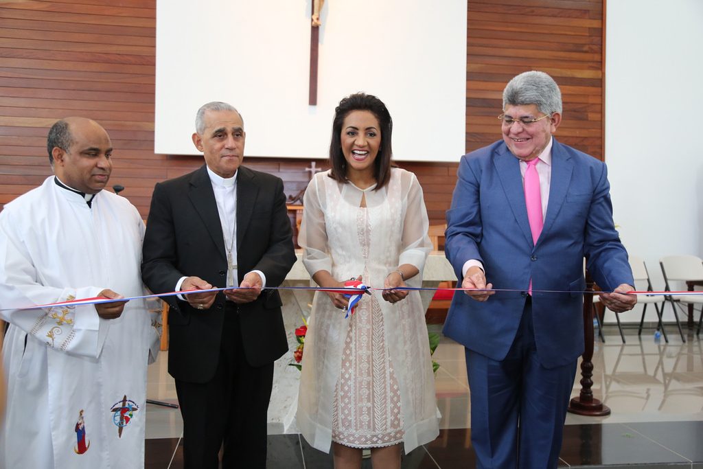 La nueva iglesia fue inaugurada con una eucaristía oficiada por monseñor Bretón Martínez, arzobispo de la Arquidiócesis de Santiago, quien recibió las llaves de manos de la primera dama.