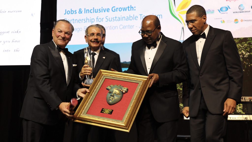 Montego Bay, Jamaica.-Anoche fue reconocido en Montego Bay, Jamaica, el presidente del Grupo Puntacana, Frank Rainieri. El galardón fue entregado por el presidente Danilo Medina. También por el primer ministro de Jamaica, Andrew Holness y el ministro de Turismo, Edmund Bartlett.
