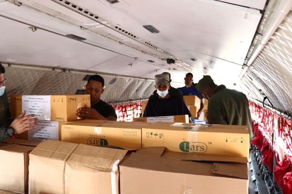 Base Aérea de San Isidro, Santo Domingo, Este, R. D.-La Fuerza Aérea de la Republica Dominicana (FARD) a través de la Dirección de Enlace y Asuntos Exteriores al igual que la misma oficina de la Fuerza Aérea Colombiana (FAC) y el Sistema de Cooperación entre las Fuerzas Aéreas Americanas (SICOFAA), canalizó un traslado de medicamentos y ayuda humanitaria hacia Puerto Príncipe, Haití, para responder a los afectados ante el terremoto que hace unos días impactó la vecina nación.