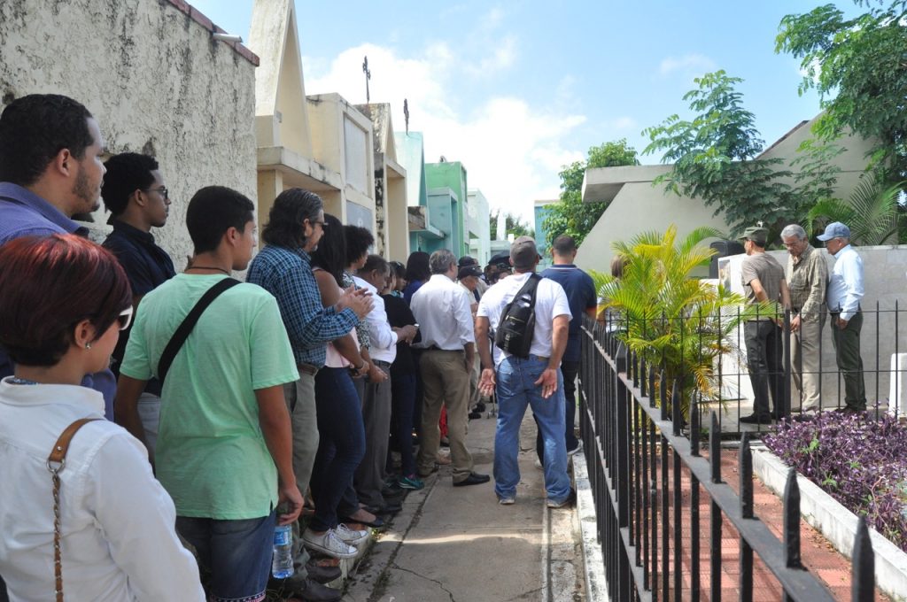 Delante del mausoleo donde reposan los restos Francisco Alberto Caamaño Deñó, en el Cementerio Nacional de la avenida Máximo Gómez, fue tomado el juramento a cargo del periodista Antonio María, presidente en funciones de la Fundación Caamaño a nivel nacional y presidente de la filial San Francisco de Macorís.