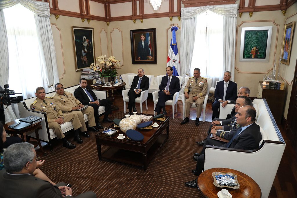 Acompañaron al presidente Danilo Medina los ministros de la Presidencia, Gustavo Montalvo; de Defensa, Rubén Darío Paulino Sem, y de Hacienda, Donald Guerrero, así como Marjorie Espinoza, viceministra de Relaciones Exteriores.