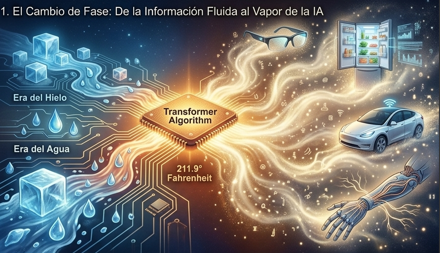 1. El Cambio de Fase: De la Información Fluida al Vapor de la IA