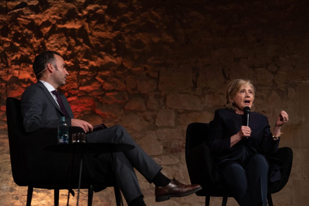 El director del CIDOB, Pol Morillas, y la ex secretaria de Estado de los Estados Unidos de América, Hillary Clinton, participan como ponentes en el acto central del 50º aniversario del CIDOB (Barcelona Centre for International Affairs), en la Capella del MACB, a 2 de junio de 2023, en Barcelona, Catalunya (España). Durante su intervención, Clinton protagoniza el diálogo ‘A life in global politics’. Clinton es una de las figuras más destacadas de la política norteamericana, además de haber sido la primera mujer candidata a la presidencia de los EE. UU. En la actualidad, Clinton está al frente de la organización Onward Together. El pasado miércoles 31 de mayo, se reunió con el Rey Felipe VI en el Palacio de La Zarzuela. 02 JUNIO 2023;CIDOB;INTERNACIONAL David Zorrakino / Europa Press 02/6/2023