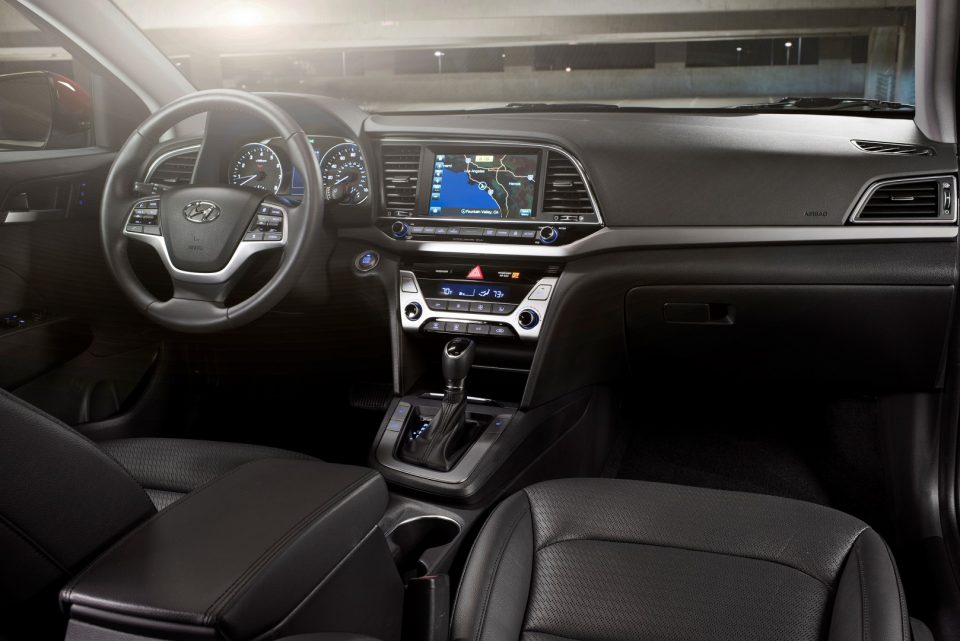 A primera vista es fácil confundirlo con su hermano mayor el Sonata. La cabina del Elantra es sorprendentemente amplia, y Hyundai se vanagloria en pregonar que es la mejor de toda la clase. Excelente trabajo de ingeniería para trabajar con 102.2 pies cúbicos, fácilmente calificaría en la categoría de un sedán de mediano tamaño. La amplitud también es palpable en la consola central, que, con exuberante diseño, combina de forma atrayente controles táctiles y botones tradicionales.