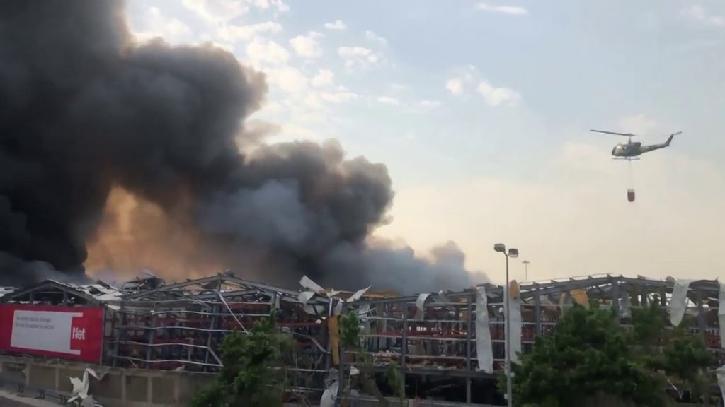 Incendio en el puerto de Beirut un mes después de las explosiones