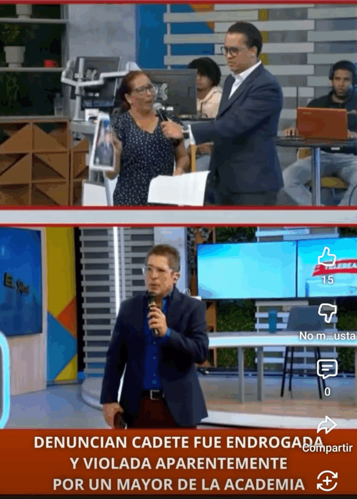 “Mi hija es cadete de segundo año de la Academia de Hatillo, San Cristóbal. Fue drogada y violada, yo denuncié el 27 de mayo y no han hecho nada. El mayor José Manuel Luciano Soriano, inspector de la Escuela de Entrenamiento de Hatillo”, dijo la madre de la víctima en el programa El Show del Mediodía.
