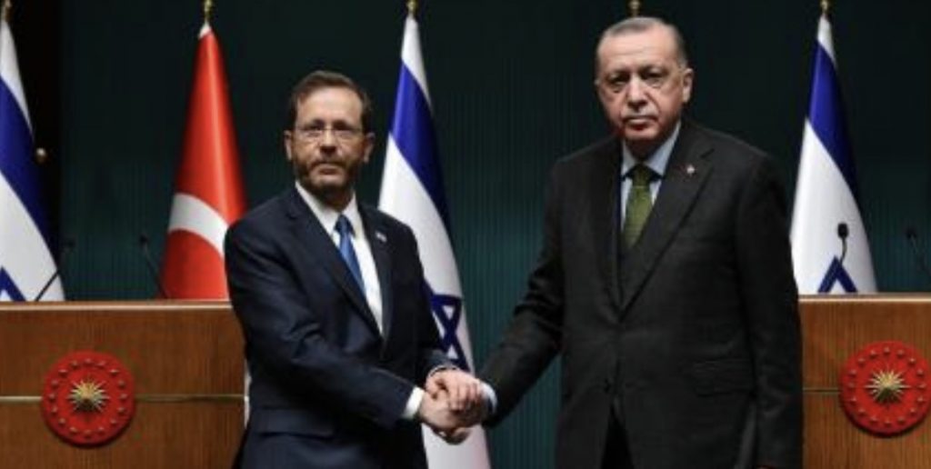 El presidente israelí señaló este miércoles que la restauración de relaciones diplomáticas completas “alentarán mayores relaciones económicas, el turismo mutuo y la amistad entre los pueblos israelí y turco”.