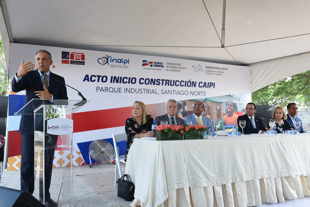 Al dar el primer palazo para la construcción de la Estancia Infantil del Parque Industrial Santiago Norte ( PISANO), destacó que es un compromiso del gobierno del presidente Danilo Medina continuar apoyando las zonas francas.