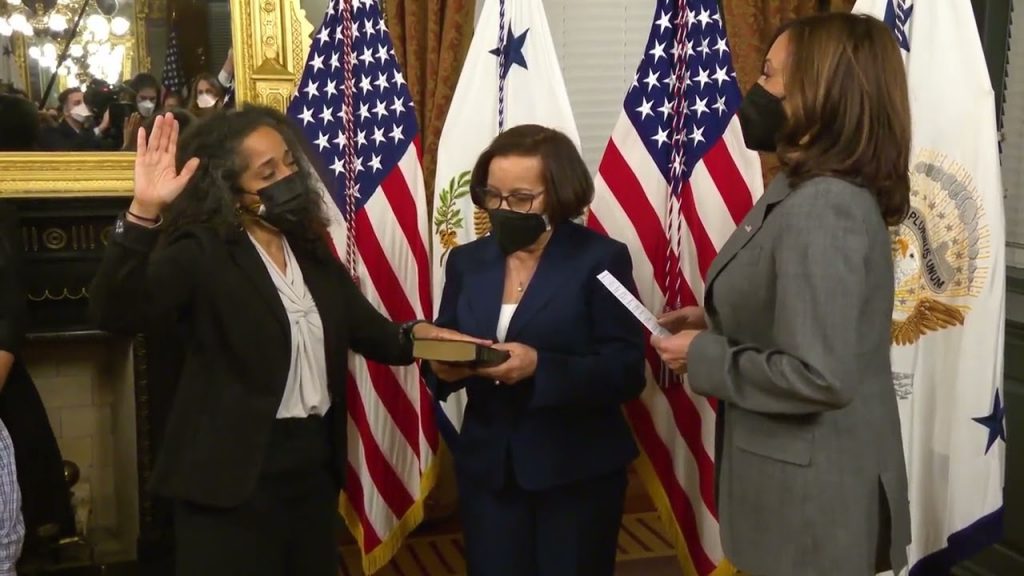 Julissa Reynoso Pantaleón ha jurado este jueves su cargo como nueva embajadora de Estados Unidos en España y Andorra en una breve ceremonia ante la vicepresidenta Kamala Harris en sus oficinas en la Casa Blanca.