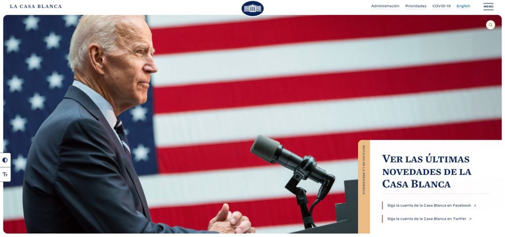 La sección en este idioma desapareció en el mandato de Donald Trump y vuelve con la llegada de Joe Biden