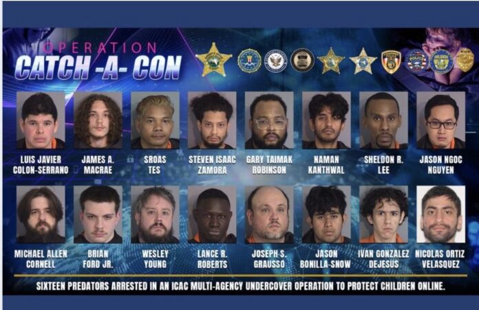 CONDADO DE OSCEOLA, Florida — Una operación multiagencial, liderada por la Unidad de Crímenes en Internet contra Niños (ICAC, por sus siglas en inglés) de la Oficina del Sheriff del Condado de Osceola, resultó en el arresto de 16 hombres durante un esfuerzo dirigido a identificar a individuos que intentaban explotar a menores a través de internet.
