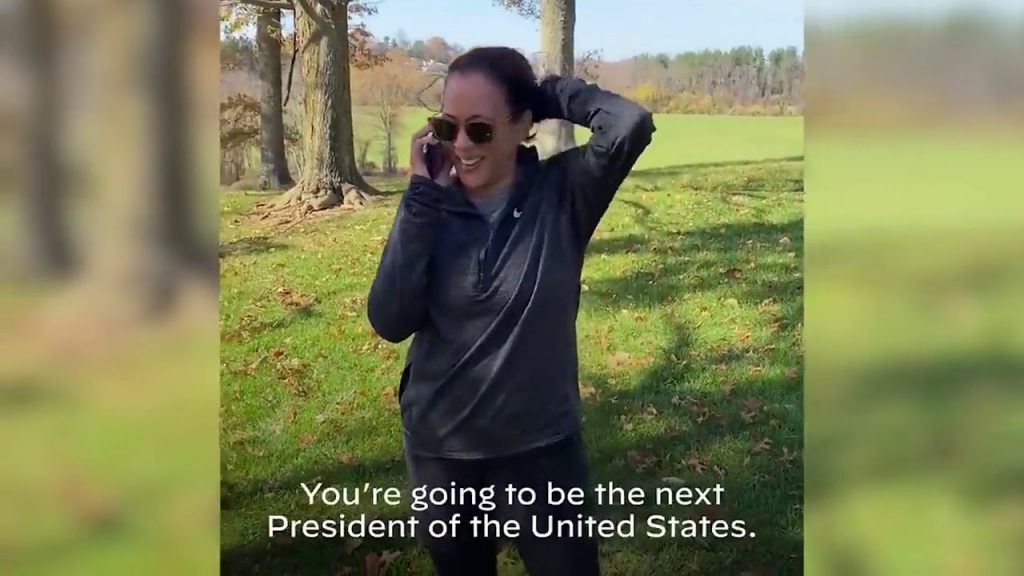 El momento en el que la próxima vicepresidenta de EEUU, Kamala Harris, llama a Biden: “Lo hemos logrado Joe. Vas a ser el próximo presidente”. Harris es la primera mujer que logra romper el ‘techo de cristal’ y alzarse con la vicepresidencia estadounidense . (Fuente: Twitter)