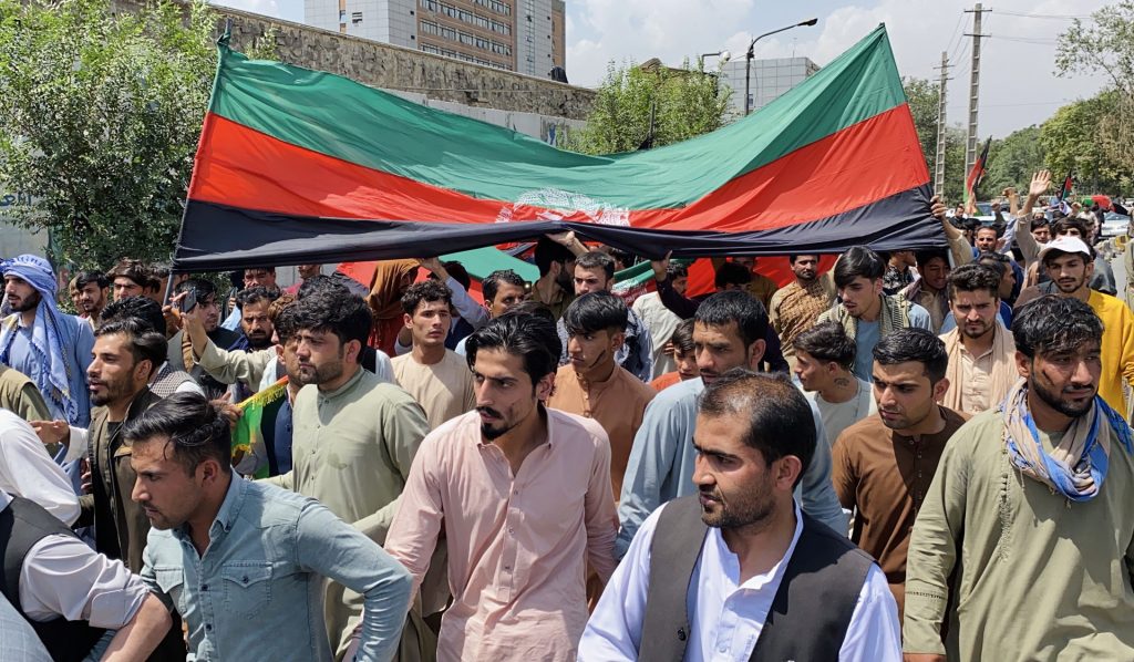 A la manifestación en Kabul han acudido un centenar de personas –mujeres incluidas– ondeando mayoritariamente la bandera roja, negra y verde, un signo de protesta frente a los talibán, que tienen su propia enseña. Según ha recogido la agencia DPA, los manifestantes cantaban “larga vida a Afganistán” y “nuestra bandera, nuestro orgullo”.