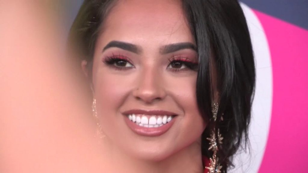 La artista mexicana-estadounidense Becky G., intérprete de los éxitos “Mayores” y “Sin pijama”, llegó con una chaqueta de color naranja intenso con un escote vertiginoso.