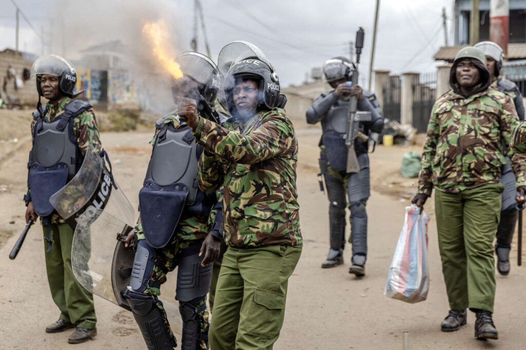 Un oficial de policía de Kenia dispara un bote de gas lacrimógeno para dispersar a algunos manifestantes mientras se reúnen para manifestarse en Nairobi, Kenia, el 12 de julio de 2023. El líder de la oposición keniana, Raila Odinga, ha convocado una vez más a manifestaciones en todo el país el miércoles mientras presiona al presidente William Ruto. administración. Los líderes de la oposición acusan al gobierno de ser ilegítimo y de no abordar el alto costo de la vida, ya que han lanzado una campaña nacional para recaudar firmas de los kenianos en su intento de destituir al presidente William Ruto de su cargo. (Foto de Luis Tato/AFP)