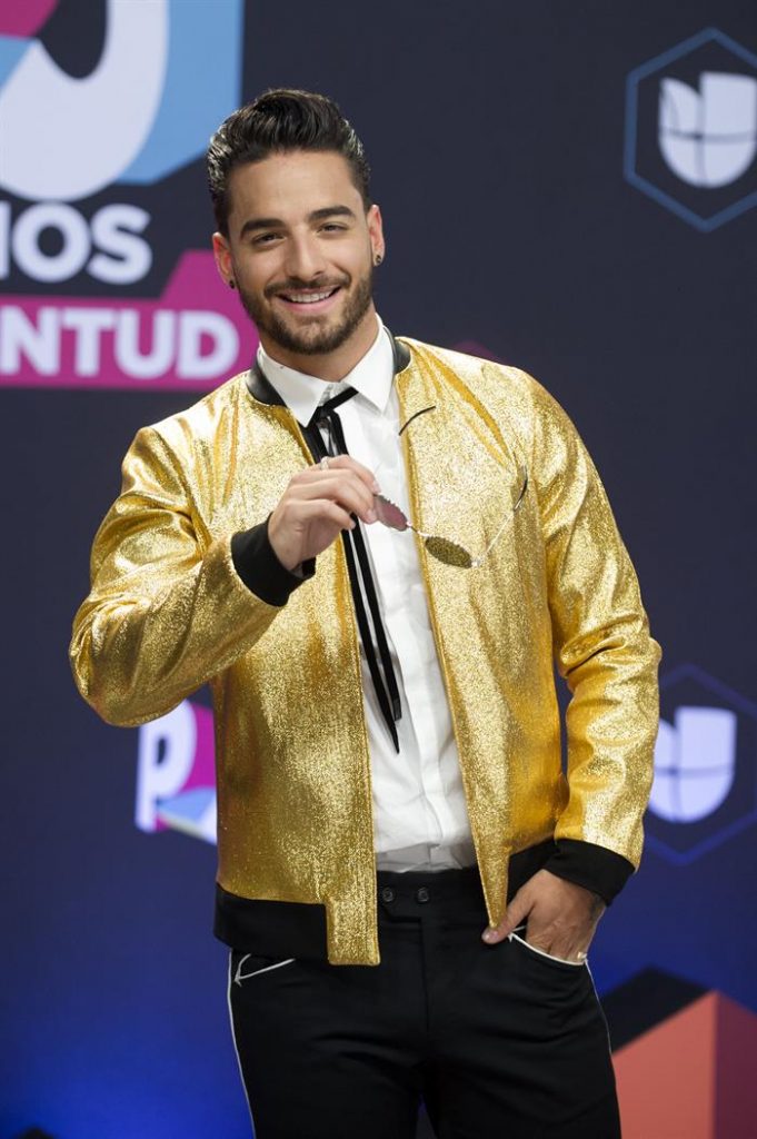 Maluma lució una chaqueta “bomber” dorada con brillantes, acompañada de un tupé clásico. El artista, nominado también a siete premios, provocó incluso llantos entre sus emocionadas seguidoras.