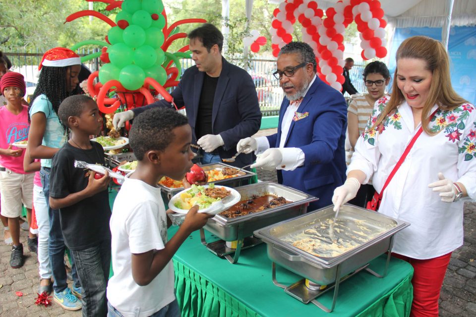 El pelotero de Grandes Ligas, David Ortiz, artistas y comunicadores como Johnny Ventura, Jatnna Tavárez, Marcos Yaroide, Xiomara Fortuna; los integrantes de Chiquito Team Band, Frank Ceara y Pablo Mckinney fueron parte de las personalidades que acompañaron a la Vicemandataria a servir los alimentos.