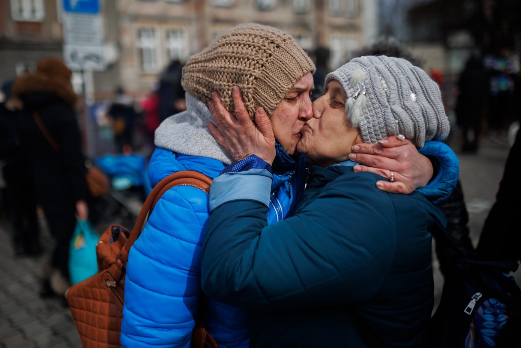 Una madre y una hija se besan a su llegada procedente de Ucrania en la estación de tren de Przemysl, cinco días después del inicio de los ataques por parte de Rusia en Ucrania, a 1 de marzo de 2022, en Przemysl, (Polonia). Polonia se ha convertido en un punto de refugio para miles de personas que escapan de la guerra que, el pasado 24 de febrero, inició Rusia contra Ucrania. Este país, que hace frontera con Ucrania, está siendo utilizado por los refugiados con el fin de escapar del conflicto bélico que se está viviendo en su país. La guerra en Ucrania, por el momento, se ha saldado con 352 civiles fallecidos y más de 2.000 heridos, de los cuales 16 menores han perdido la vida y 45 están heridos. 01 MARZO 2022;POLONIA;UCRANIA;HUIDA;ESTACIÓN DE TREN Alejandro Martínez Vélez / Europa Press 01/3/2022