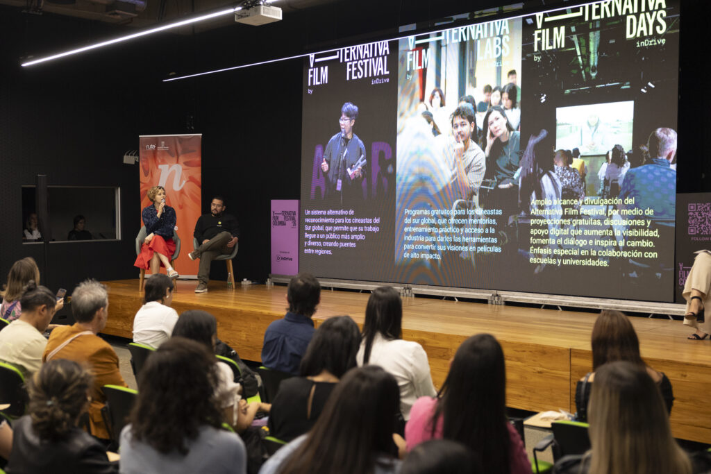 Durante la primera conferencia de prensa de Alternativa en Colombia, realizada en el marco de Miradas Medellín 2025, la directora de Alternativa, Liza Surganova, y Harold Forero Neira, representante senior de desarrollo empresarial de inDrive, compartieron los primeros detalles del evento y los resultados de la convocatoria 2026, que superó todas las expectativas.