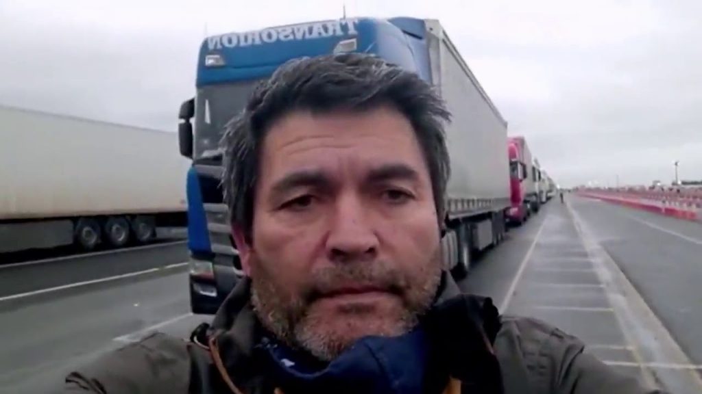 Imágenes y declaraciones del transportista Jose Antonio “Batata”, quien se encuentra atrapado en la campa abandonada junto al aeropuerto de Manston, donde asegura que miles de transportistas están dejados a su suerte, sin comida ni higiene alguna. (Fuente: Fenadismer)
