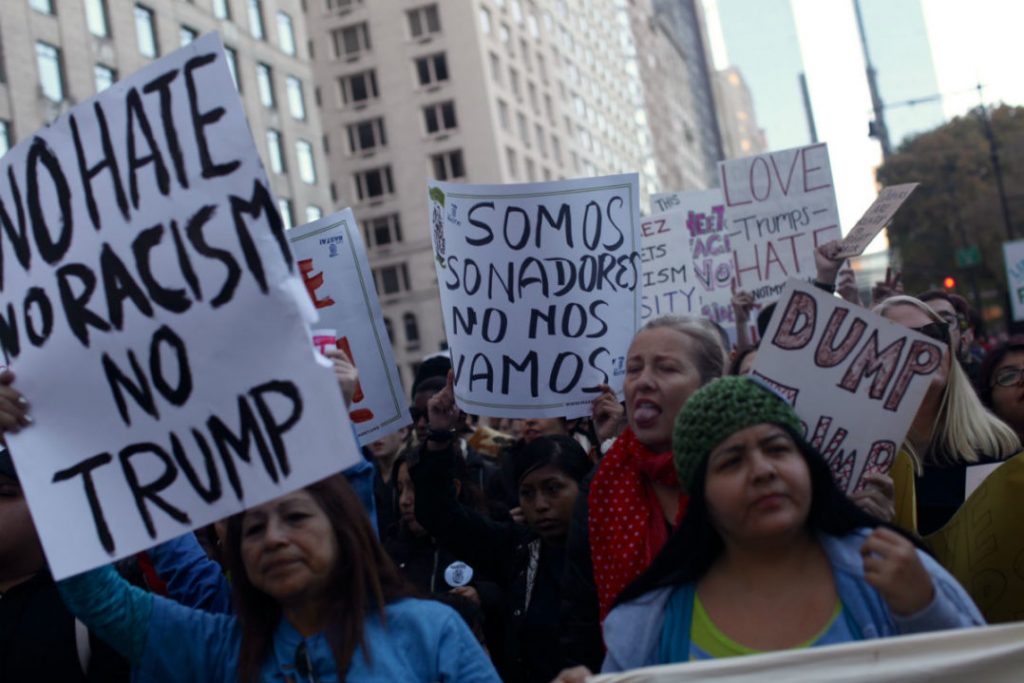 En Chicago, centenares de personas se reunieron al otro lado del río, frente a la Trump Tower, donde gritaban “Sí sí, no no, que se vaya Donald Trump”.