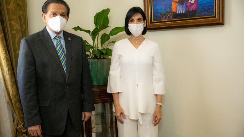 Santo Domingo, R. D.-  El Ministro de Salud, Dr. Daniel Enrique de Jesús Rivera Reyes y la Primera Dama, de la Republica Dominicana Doña Raquel Arbaje de Abinader, sostuvieron una reunión este viernes para intercambiar ideas sobre el mejoramiento de los servicios ofrecidos por el Centro de Atención Integral a la Discapacidad (CAID), en sus distintas sedes.