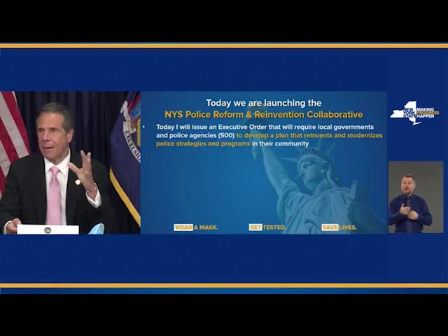 El gobernador de Nueva York, Andrew Cuomo, ha aprobado este viernes una nueva ley de reforma policial que criminaliza las maniobras de estrangulamiento por parte de los agentes durante las detenciones, entre otras medidas, como respuesta a las protestas tras la muerte de George Floyd, fallecido precisamente asfixiado durante un arresto y que desembocó en la imputación por asesinato de uno de los agentes. (Fuente: Gobierno Estado NuevaYork)