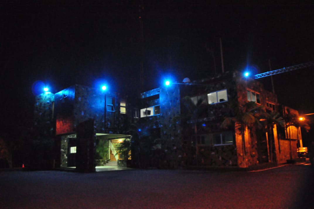 Lucen de azul los edificios de la Oficina de Ingenieros Supervisores de Obras del Estado (OISOE), la Contraloría General de la República (CGR), el Hospital General Plaza de la Salud (HGPS) y el Centro de Desarrollo y Competitividad Industrial (Proindustria).
