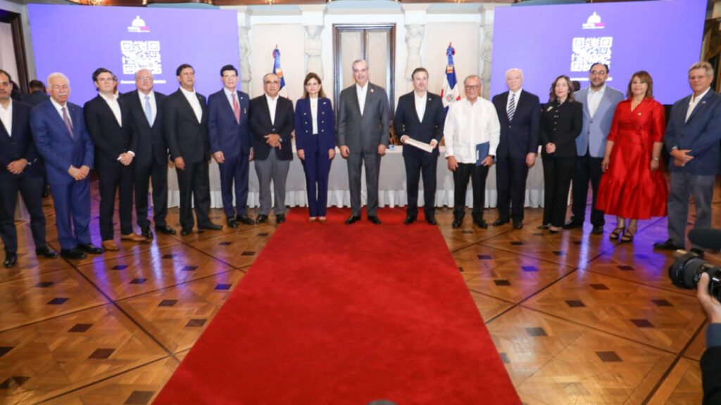 Palacio Nacional, Santo Domingo, R. D.- El presidente Dominicano Luis Rodolfo Abinader Corona, junto con la vicepresidenta Raquel Peña, encabezó la presentación de las acciones priorizadas por los comités sectoriales de la iniciativa Meta RD 2036, durante una sesión ampliada del Pleno del Consejo Nacional de Competitividad.