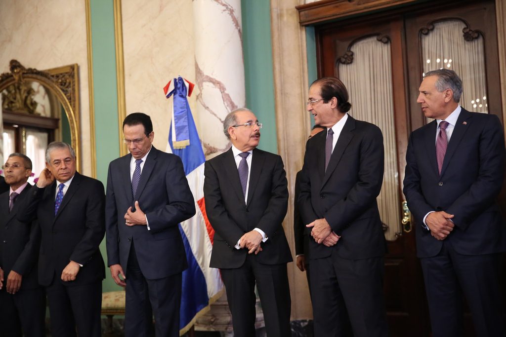 Junto al presidente Danilo Medina estuvieron los ministros de la Presidencia, Gustavo Montalvo; administrativo de la Presidencia, José Ramón Peralta; de Trabajo, Winston Santos y el consultor jurídico del Poder Ejecutivo, Flavio Darío Espinal.