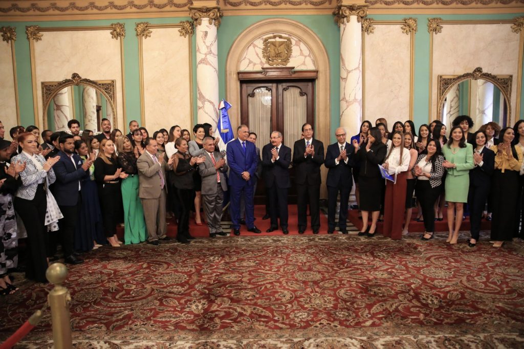 Palacio Nacional, R. D.-El presidente de la Republica Dominicana Danilo Medina Sanchez recibió a los 53 estudiantes universitarios participantes de Telemicro México 2019, iniciativa del grupo de medios que dirige el empresario Juan Ramón Gómez Díaz y que les permitirá adquirir conocimientos en el país azteca.