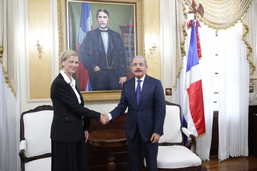 Palacio Nacional, R. D.-El presidente de la Republica Dominicana Danilo Medina Sanchez recibió hoy en su despacho del Palacio Nacional a la nueva representante en el país del Programa de las Naciones Unidas para el Desarrollo (PNUD), Inka Mattila, quien sustituye en la misión a Lorenzo Jiménez de Luis.