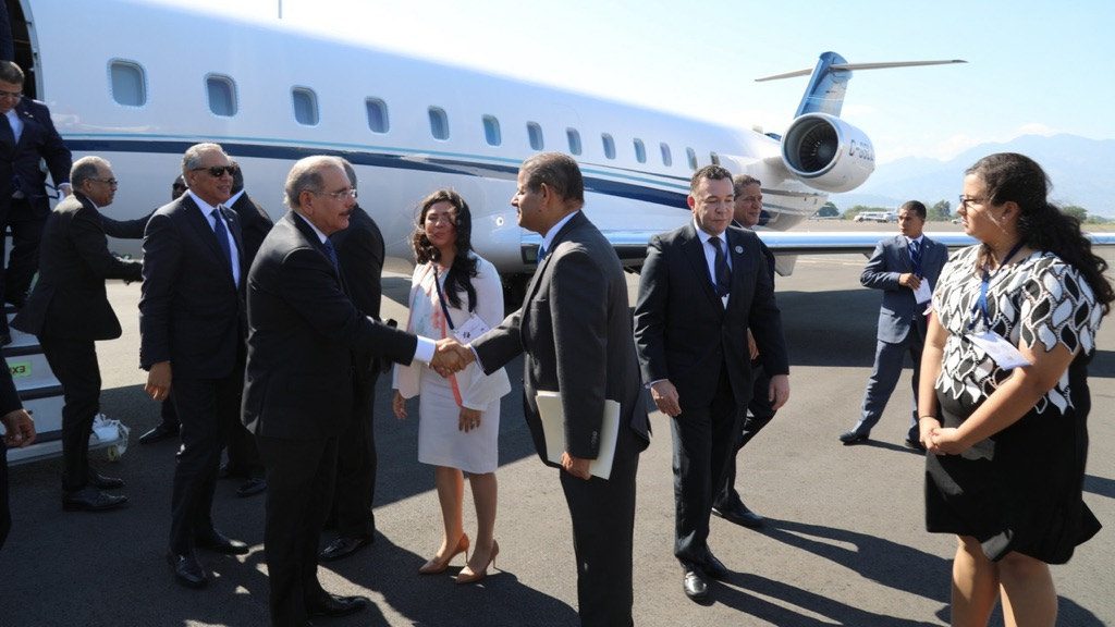 San Jose, Costa Rica.-El Presidente de la Republica Dominicana Danilo Medina Sanchez arribó al hermano país de Costa Rica, donde asistirá hoy en la mañana a la transmisión de mando del presidente Carlos Alvarado Quesada, electo para el periodo 2018-2022.